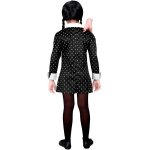 Costumul Dark Girl Copii include rochia cu guler si maneci albe, alaturi de nasturi aplicati.