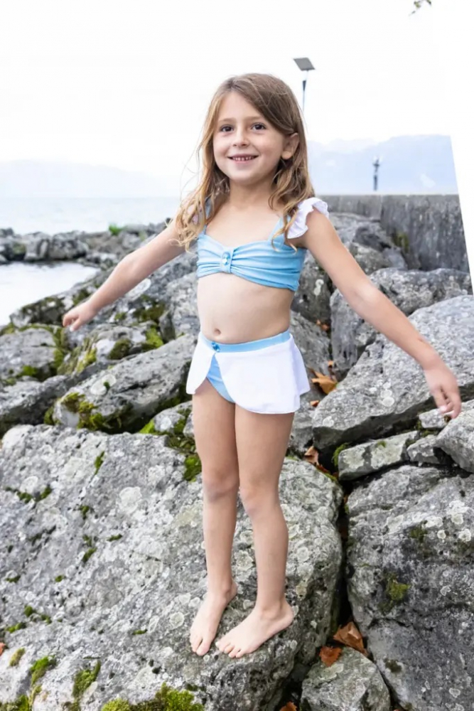 Costumul de baie pentru fetite contine topul si chilotelul.