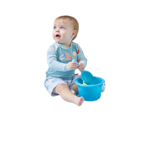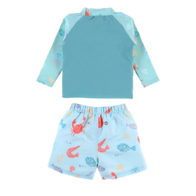 Acest set format dintr-un top aqua UV si boxeri imprimati cu animale de mare se va potrivi perfect tuturor baietilor care au nevoie de o aventura distractiva în apa!