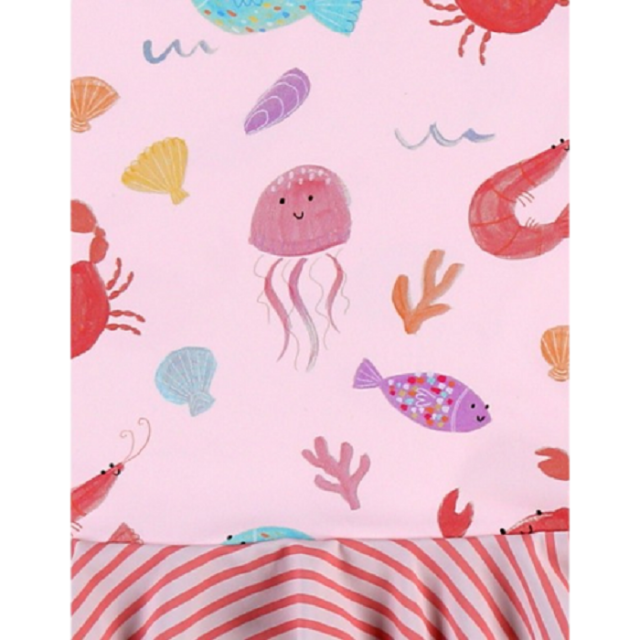 Acest set format dintr-un top UV roz si pantaloni de baie imprimati cu animale de mare se va potrivi perfect tuturor fetitelor care au nevoie de o aventura distractiva în apa!