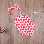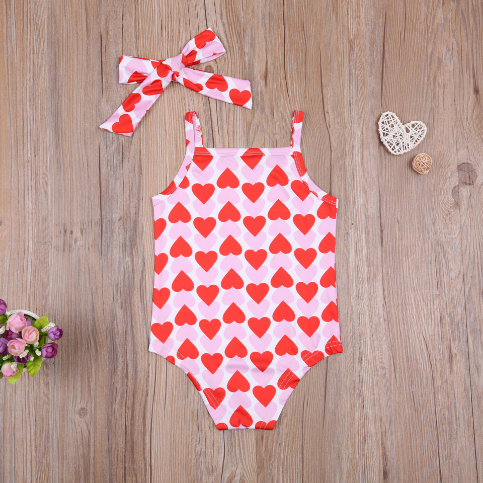 Costum de baie cu bentita si capse pentru fetite Inimioare Marime 100