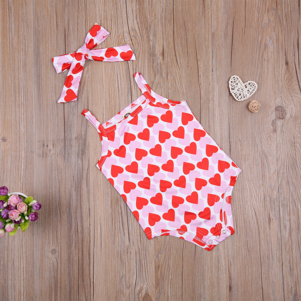 Costum de baie cu bentita si capse pentru fetite Inimioare Marime 110