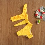 Costum de baie galben decupat Marime 130