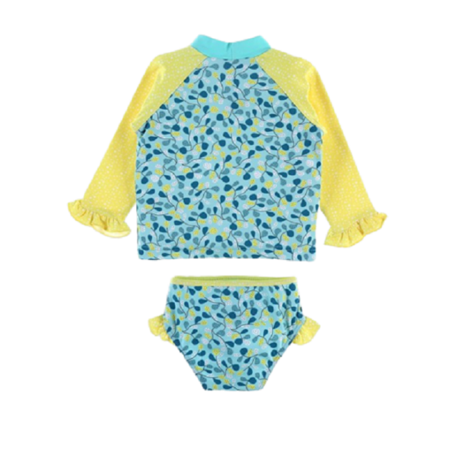 Datorita acestui set anti-UV alcatuit dintr-un top cu mâneci lungi si chiloti de înot, copilul tau se va putea distra toata ziua în timp ce este protejat de razele solare.