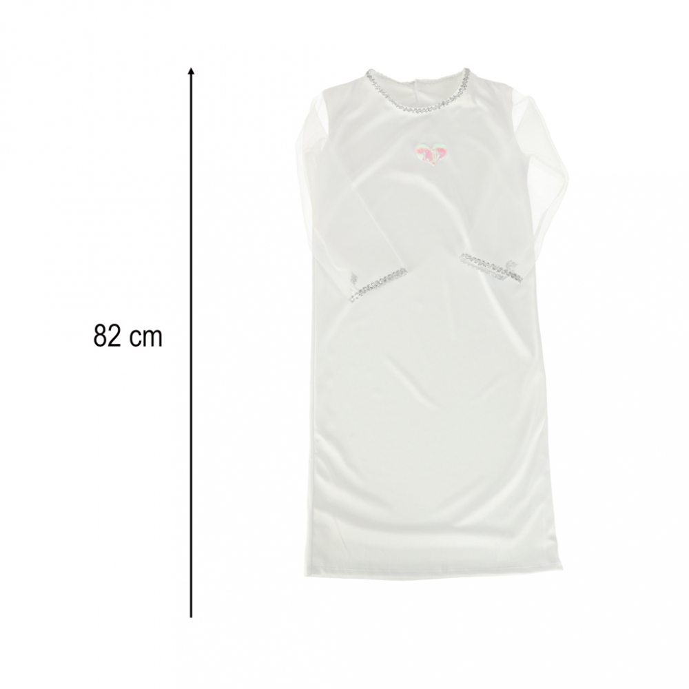 Impodobita cu o curea argintie cu inchidere cu cravata la spate. Aripi de inger detasabile cu banda velcro lipita pe spate.