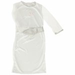 O rochie alba pura, cu maneci lungi din plasa. Lungimea gleznelor este convenabila pentru mers pe jos si pentru prevenirea impiedicarii.