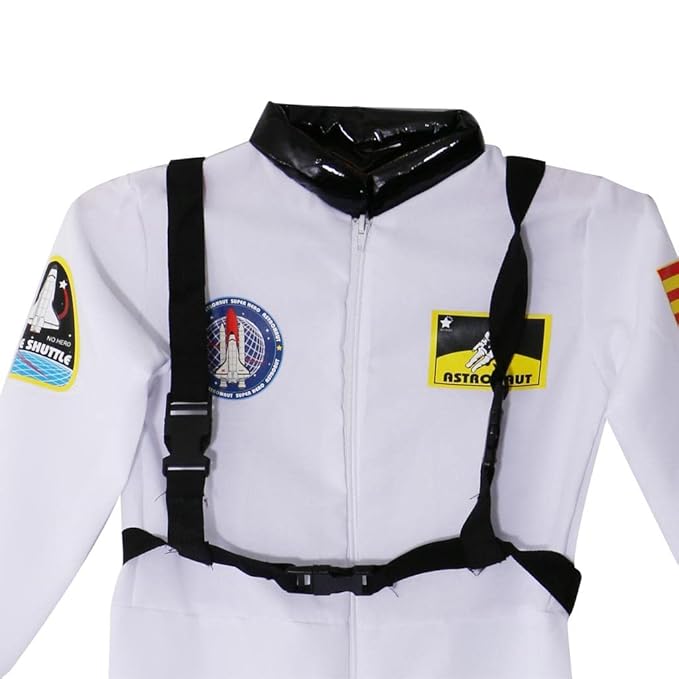 Detaliile realiste ale costumului, precum emblemele si elemente specifice spatiului, contribuie la autenticitatea experientei de explorare intergalactica.