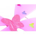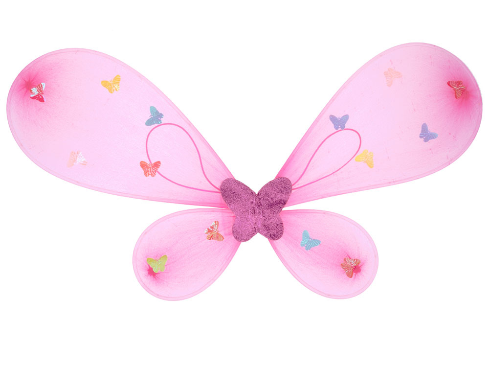 Aripi stralucitoare, roz deschis, decorate cu fluturasi mici si colorati.