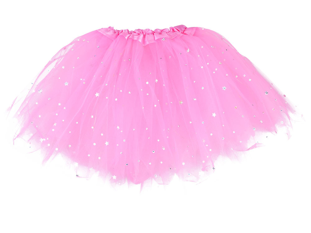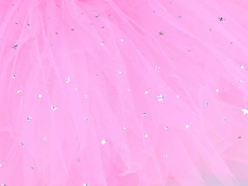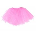 Fustita din tul roz deschis, sclipitor, cu elastic acoperit cu mici stelute argintii.