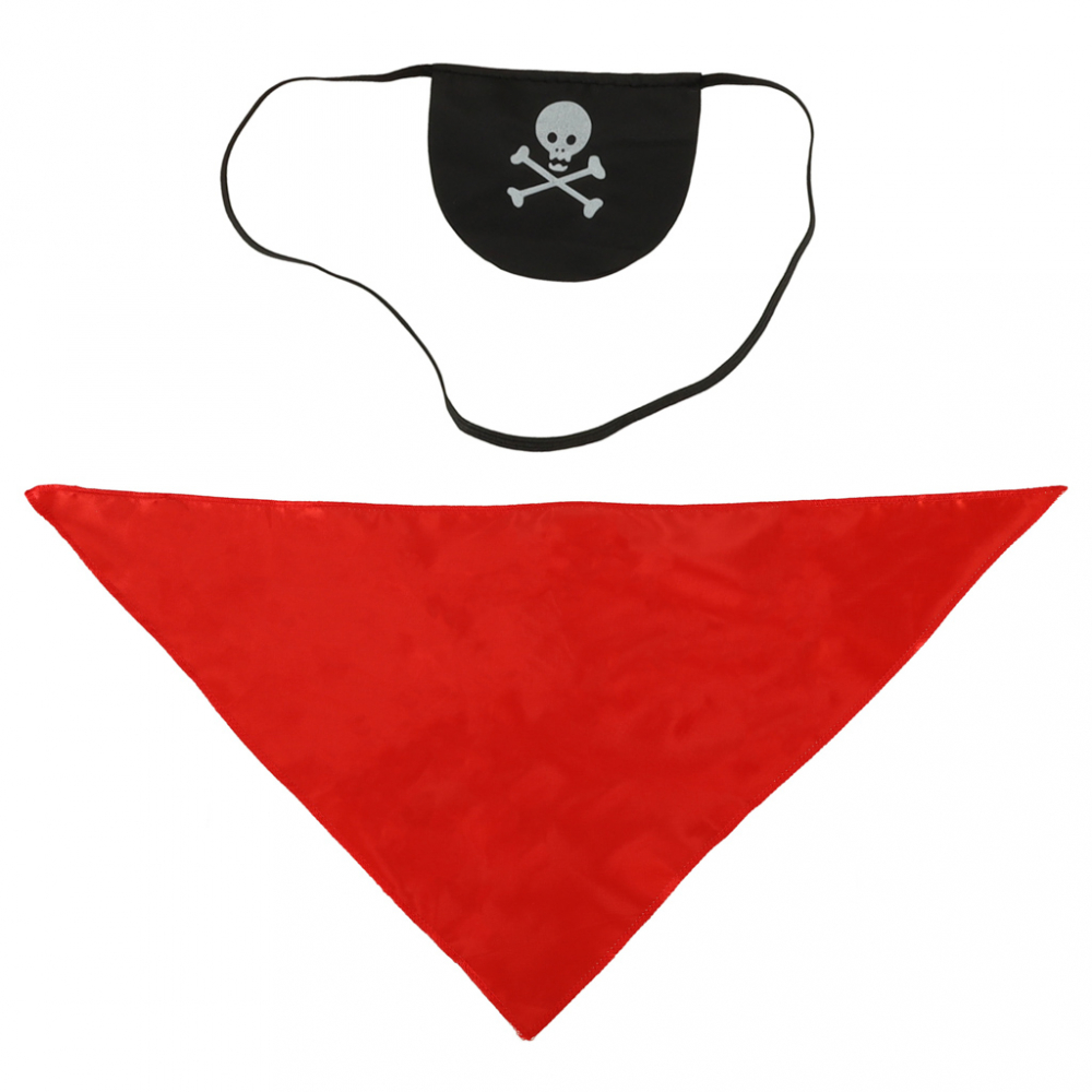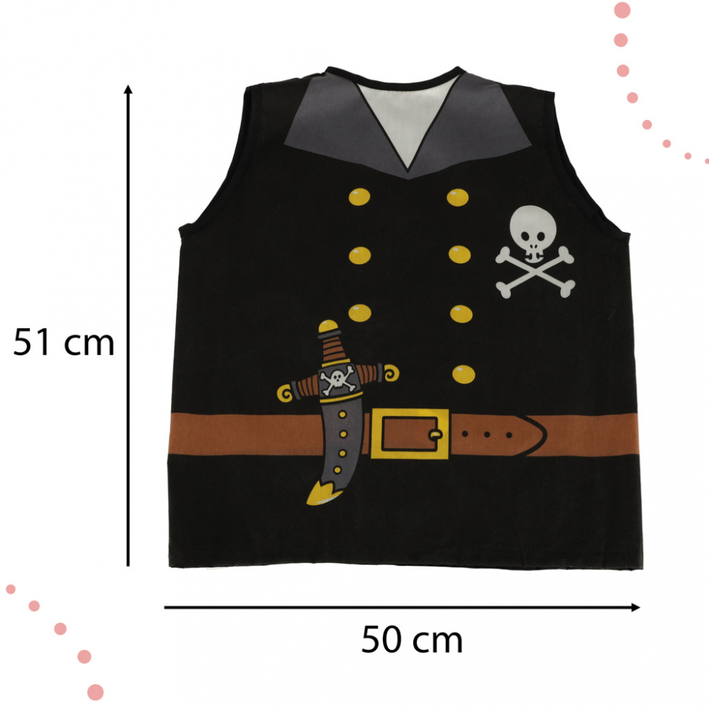 Setul include tot ce are nevoie fiecare pirat de mare: o vesta, o esarfa si o banda la ochi!