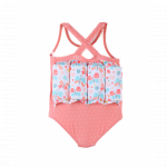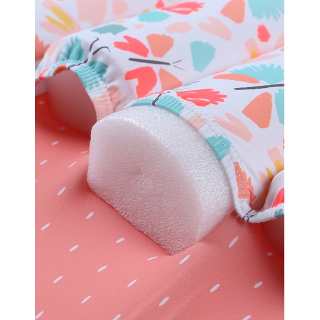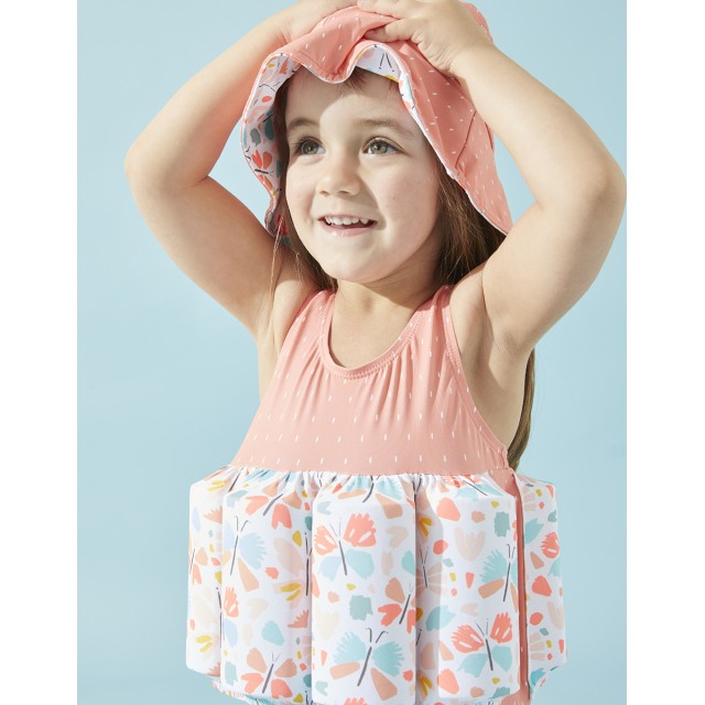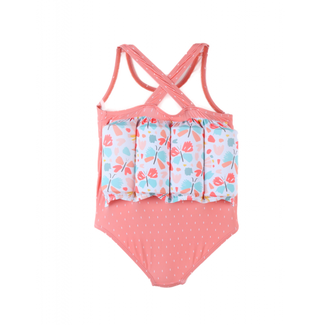 Costumul de inot flotabil coral si aqua cu imprimeu de fluture este special conceput pentru a coordona miscarile bratelor si picioarelor copilului tau in apa.