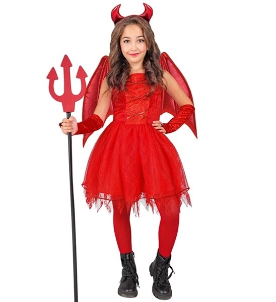 Costumul Dracusor Fetita include rochia cu detalii din tiul si paiete, aripi, codita, manusi fara degete si bentita cu cornite. Rochia nu contine jupa.