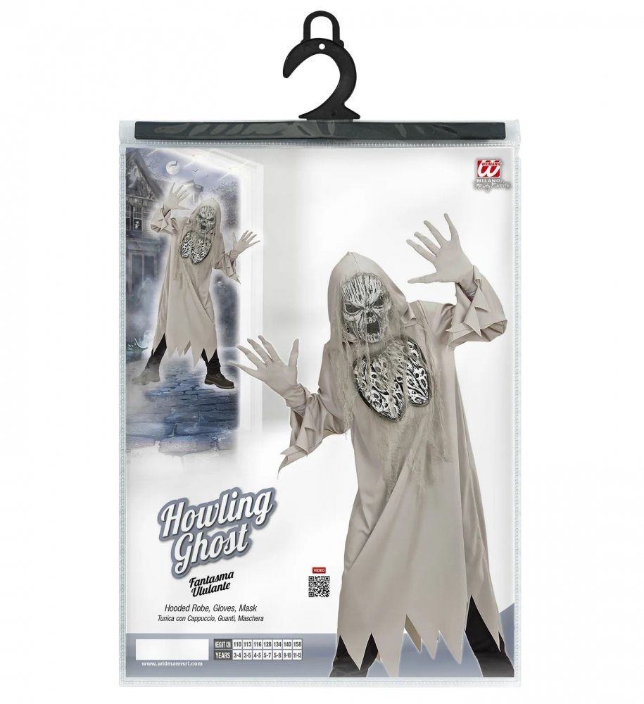 Costum Fantoma Tipatoare include roba gri cu gluga si model din latex pe piept, masca infricosatoare si manusile gri supradimensionate.