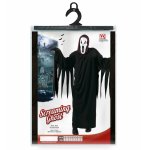Costum Fantoma Tipatoare Copii include roba neagra cu maneci supradimensionate avand fasii de material in colturi si masca cu gluga.