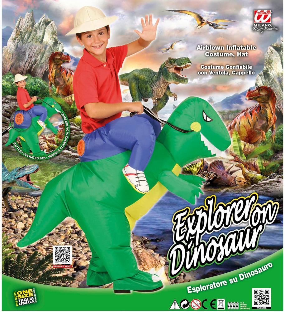 Costumul Gonflabil Dinozaur pentru copii contine costumul gonflabil si palaria.