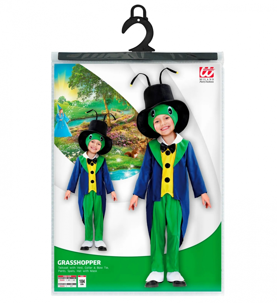 Costum Greiere Copii include fracul cu vesta aplicata, pantalonii cu acoperitoare incaltaminte, guler cu papion negru si palaria cu masca. Cel mic este pregatit de serbare!