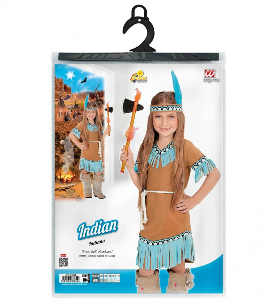 Costumul de indianca include rochia, centura si bentita fara pana.