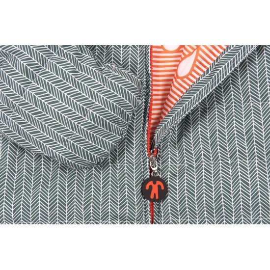 Smart tip: Integrate pe mansete si picioare sunt benzi late de material ce permit acoperirea mainilor si talpilor la nevoie. Foloseste-le cand copilul sta si pierde mai usor caldura.