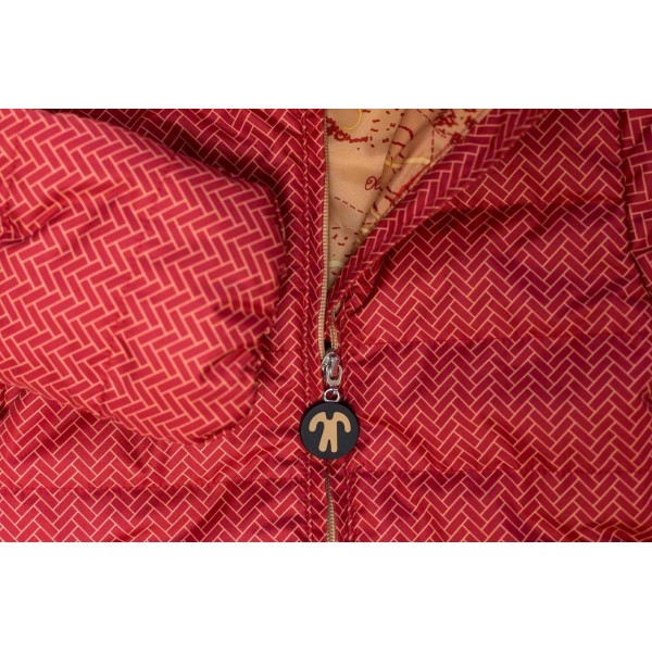 Ce primesti: un overall impermeabil, usor si pufos, cu fermoar lung pana la spate si gluga ajustabila.