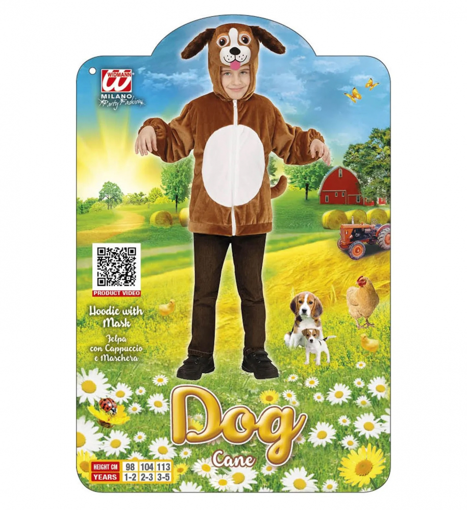 Costum Catel Jacheta Copil include jacheta din plus moale, codita aplicata, gluga cu cap de catel si se inchide prin fermoar.