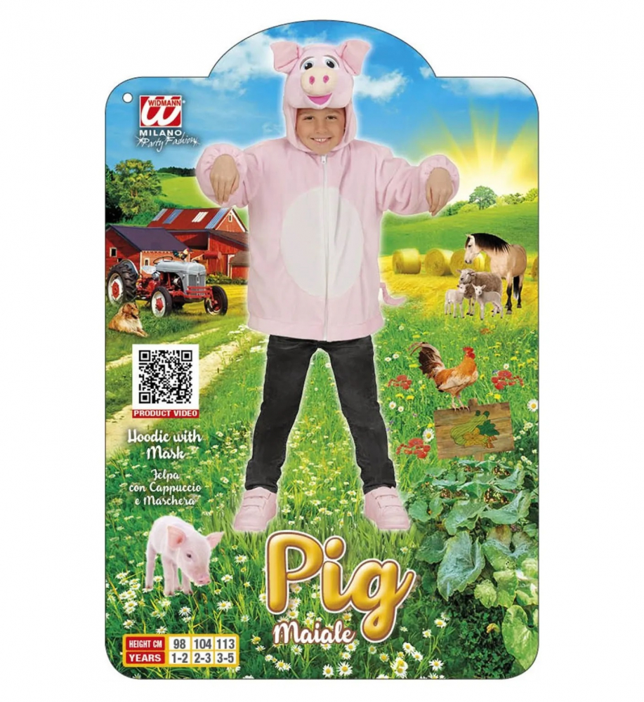 Costum Porcusor Jacheta Copil include jacheta din plus, care il va face pe cel mic sa se simta unul cu porcusorul datorita texturii materialului, codita, care ii vor oferi un motiv in plus de distractie si gluga cu cap de procusor.