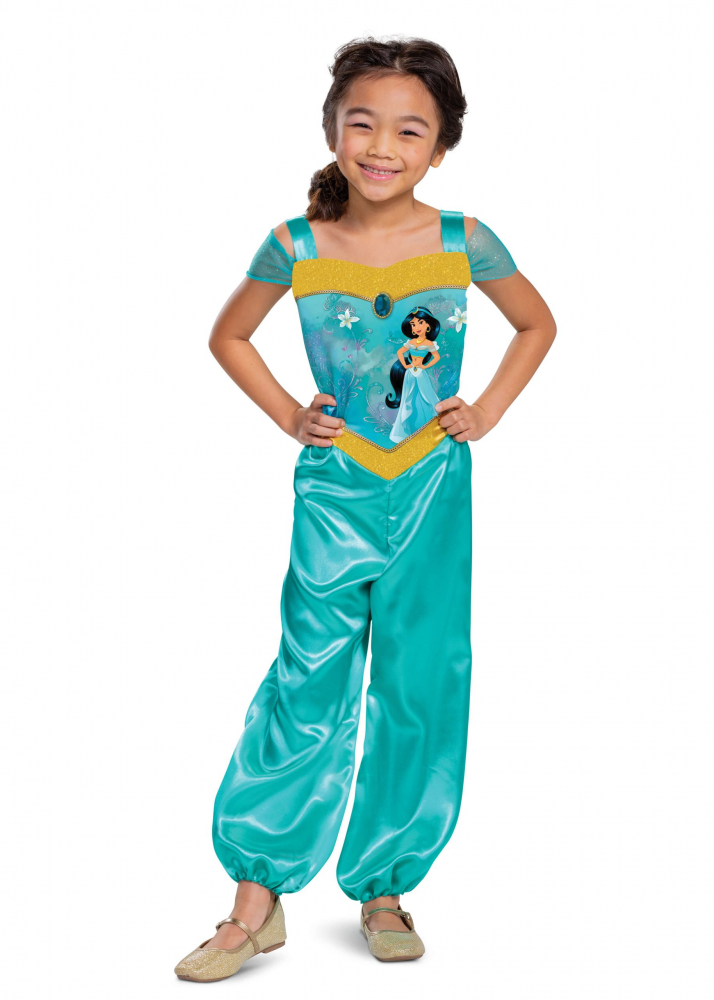 Costum Jasmine Disney Copii include salopeta cu imaginea personajului imprimata. Costumul Jasmine licentiat Disney este disponibil pentru 7-8 ani (128-134 cm inaltime).