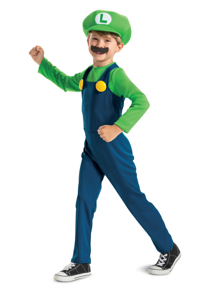 Costumul Luigi Copii licentiat contine salopeta cu bluza verde, sapca din material si mustata autoadeziva. Costumul Luigi Super Mario este disponibil pentru 7-8 ani (128-134 cm inaltime).