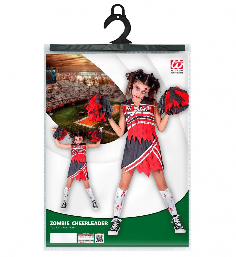 Costum Majoreta Zombie Copii include bluza, fusta si 2 pom pom asortate.