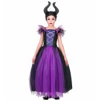 Costum Maleficent Premium pentru copii include rochia cu tul aplicat si bentita cu coarne negre.