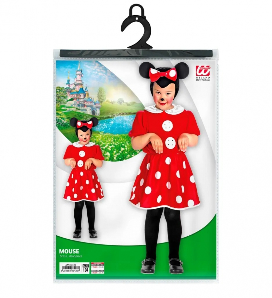 Costum Minnie Mouse include rochia si palaria cu urechi atasate.