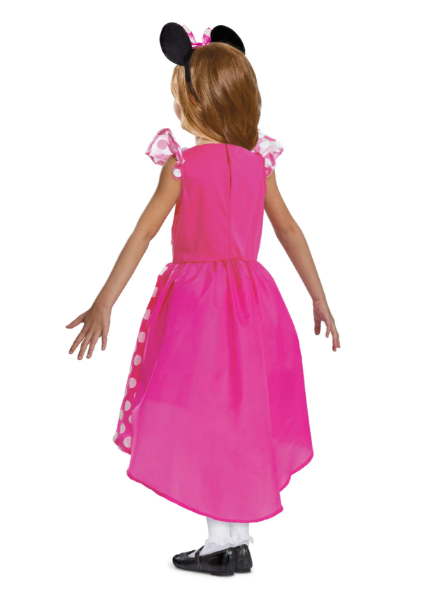 Costum Minnie Roz Disney contine rochia cu buline aplicate, avand model mai lung in partea din spate, camee cu imaginea personajului si bentita cu urechi. Costumul Disney Minnie licentiat este disponbil pentru 3-4 ani (104-110 cm inaltime).