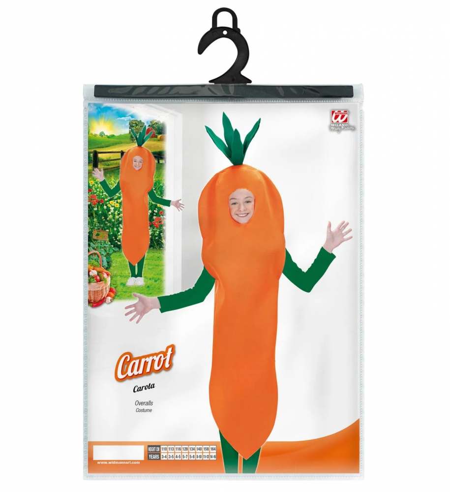 Costumul de morcov contine mascota. Salopeta verde nu este inclusa.