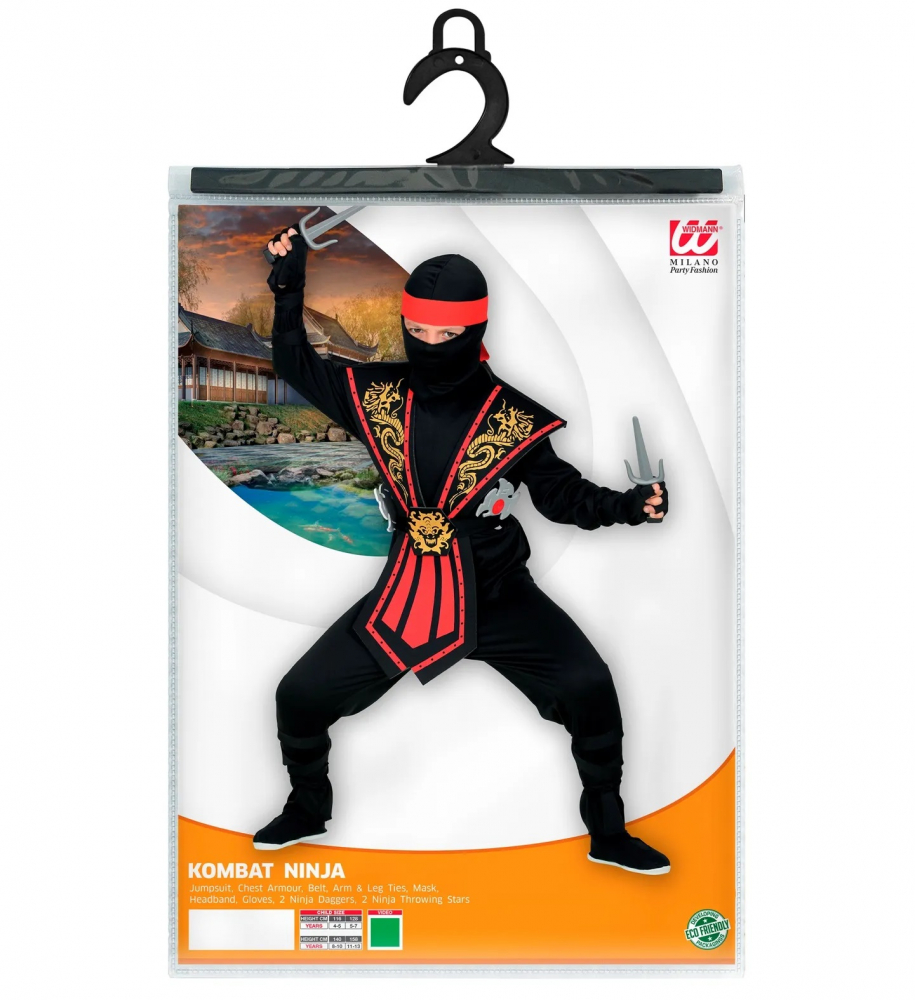 Costum Ninja Copii Kombat Rosu include salopeta, pieptar, legaturi pentru maini si picioare, centura, masca, bandana, manusi negre, 2 stelute, 2 cutite. O deghizare completa in personajul preferat de cei mici!