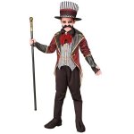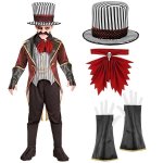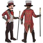 Costumul Dresor Sinistru Copii include fracul si vesta atasata, jabou, manusi fara degete si palarie.