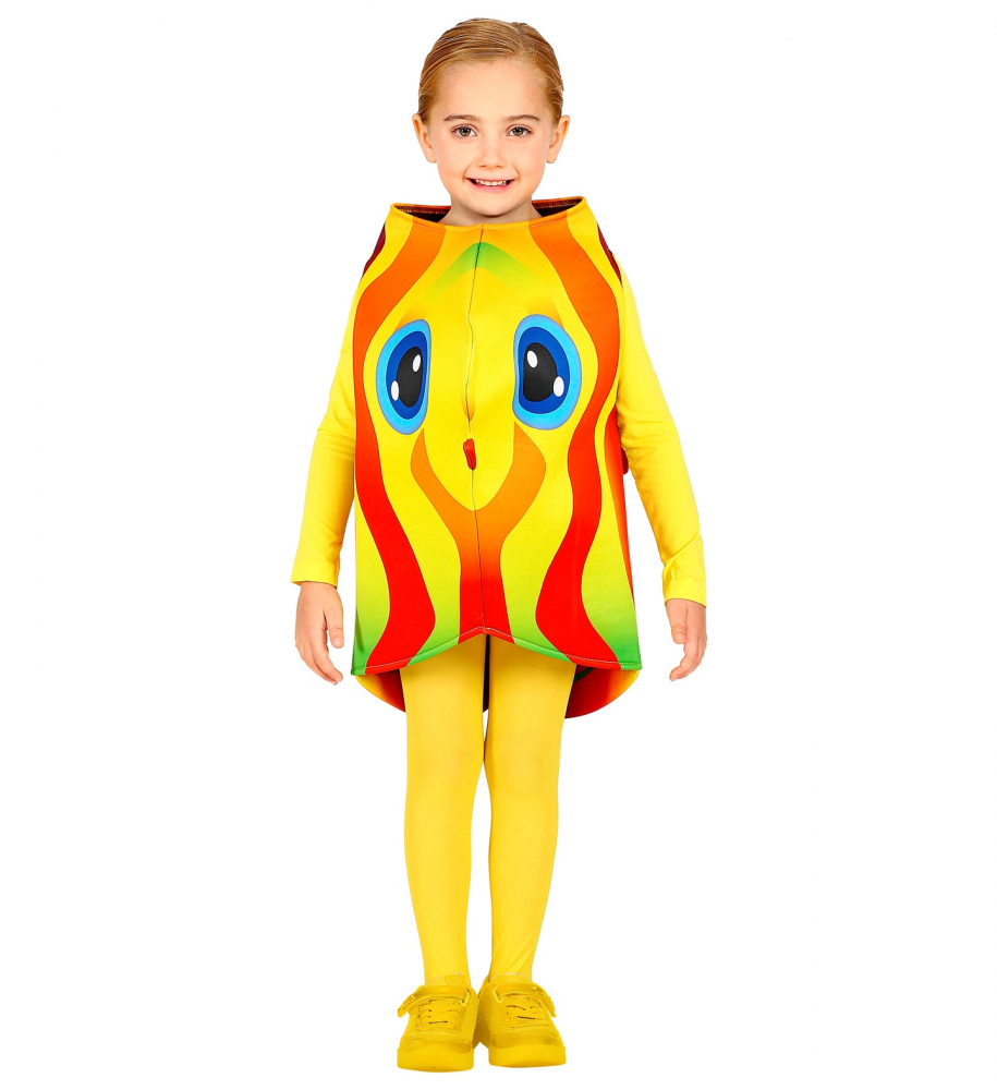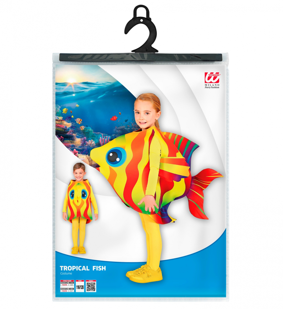 Costum Peste Tropical contine vestuta tip mascota din burete imprimat. Salopeta galbena nu este inclusa. Marimea disponibila este pentru 4-7 ani (116-128 cm).