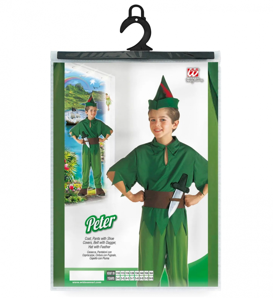 Cu un costum ca acesta, copilul va simti ca traieste povestea lui Peter Pan, singur pe o insula, ca lider al unei grupari de baieti imaginari, unde cunoaste tot felul de creaturi fictive: sirene, pirati si zane.