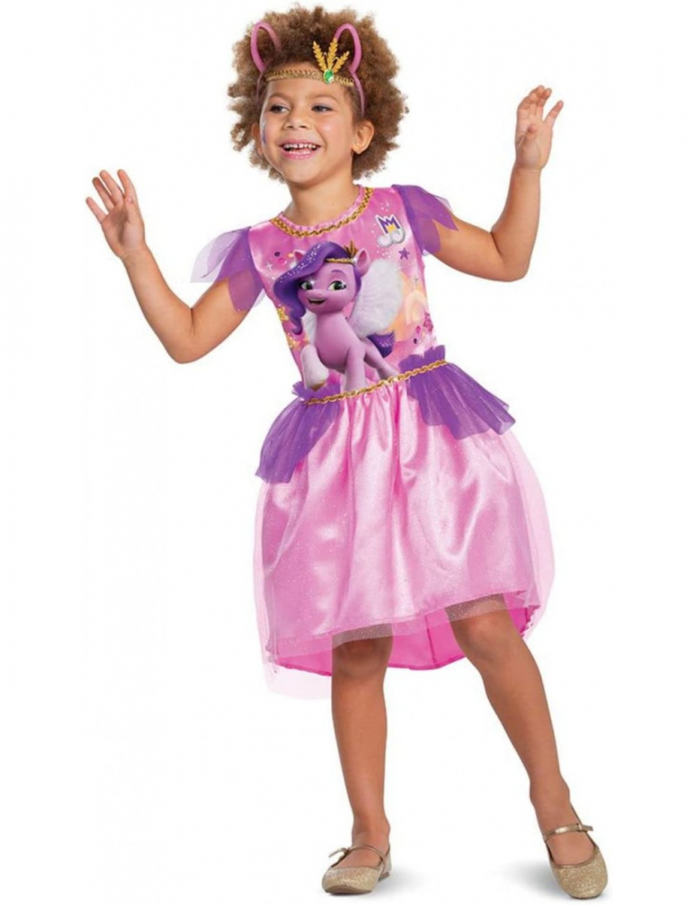 Costum Pipp Petals My Little Pony include rochia cu imaginea personajului imprimata si bentita. Costum Pipp Petals Micul meu Ponei licentiat disponibil pentru 5-6 ani (116-120 cm inaltime).