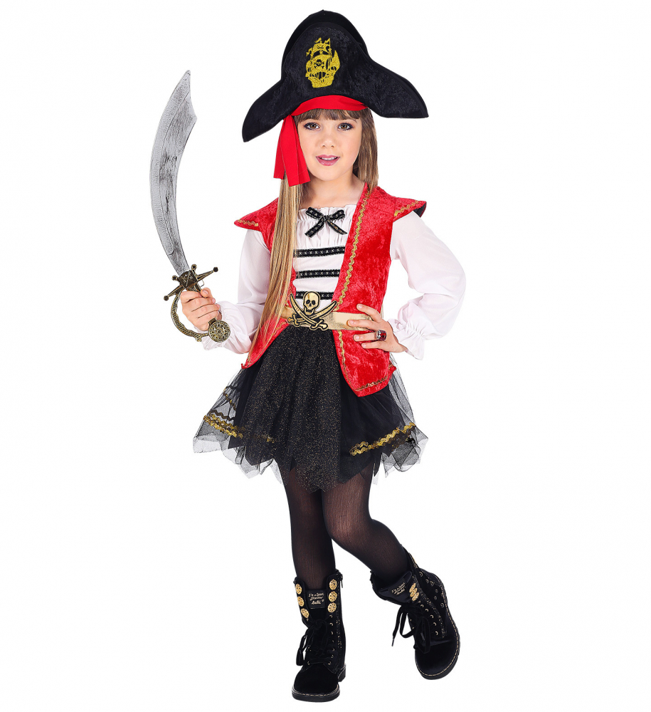 Costum Piratesa Premium include rochia cu tul aplicat si palaria cu bandana rosie. Costumul face parte din colectia Premium ce implica o mare atentie la detalii, iar materiale folosite fiind de o calitate superioara.