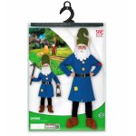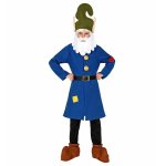 Costum Pitic Albastru include jacheta, centura si caciula cu barba din material.