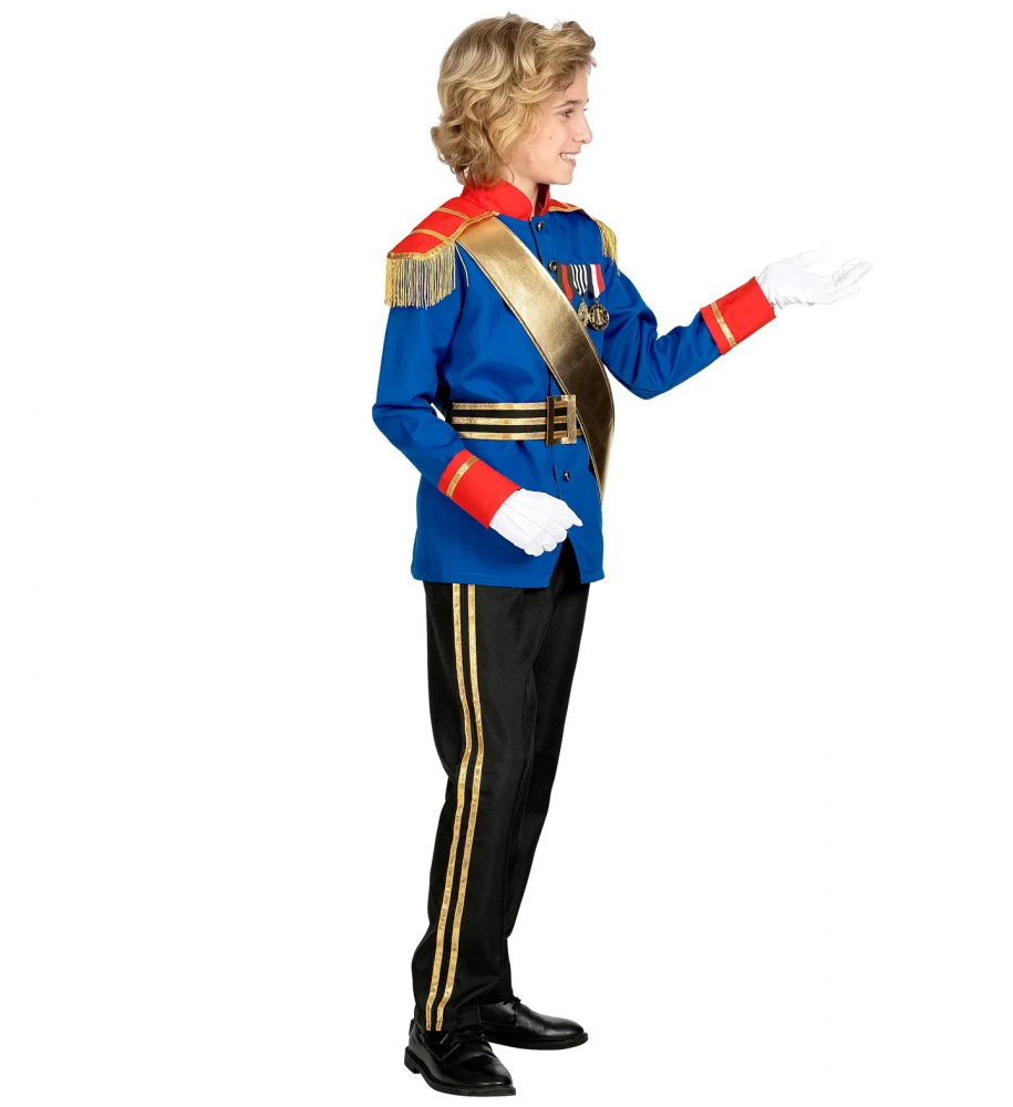 Costum Print Charming Copii include jacheta cu epoleti, pantalonii, centura si esarfa aurie. O deghizare demna de un print adevarat! Costumul este ideal pentru fiul tau iubitor de imparati si regi. Nu uita sa ii spui si povestea regelui, inainte ca micul print sa fuga pe usa la joaca. Il poti costuma pe copilul tau atat la petrecerile de ziua nasterii sau la diferite evenimente si petreceri din cadrul scolii. Fa-ti copilul rege, inainte ca el sa devina soldat!