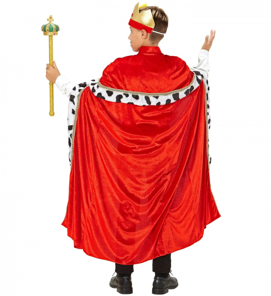 Costum Rege Mag Pelerina Copii din imitatie de catifea, cu blanita aplicata si coroana din material cu pietre aplicate. Pelerina este disponibila in 3 categorii de varsta: 5-7 ani (128 cm inaltime), 8-10 (140 cm inaltime) si 11-13 ani (158 cm inaltime). Daca de sarbatori cel mic are serbare, inseamna ca va trebui sa ii alegi un personaj biblic sau societal in care sa se costumeze. Pentru aceasta noi iti propunem sa lasi deoparte personajele Craciunului si sa patrunzi in lumea magica a povestilor nasterii Domnului. Povesti care te vor face sa zambesti si sa vezi viata cu alti ochi pentru cateva minute, atat pe tine, cat si pe cel mic. De aceea iti propunem pelerina de mag sau rege pentru serbare. Cel mic va vesti nasterea lui Iisus sau va conduce un imperiu. Suntem siguri ca va arata ca un personaj istoric!
