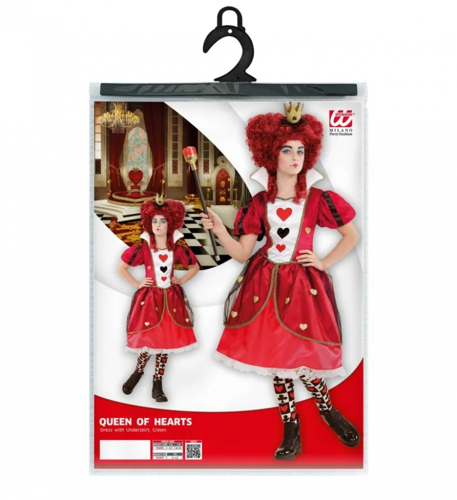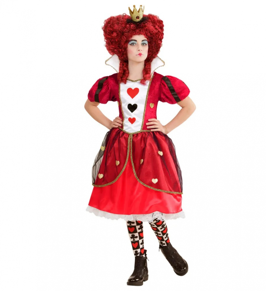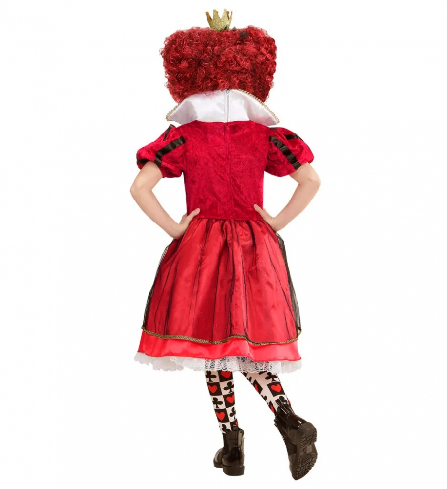 Costumul Regina Inimilor Copil include rochia cu crinolina aplicata si mini coroana.