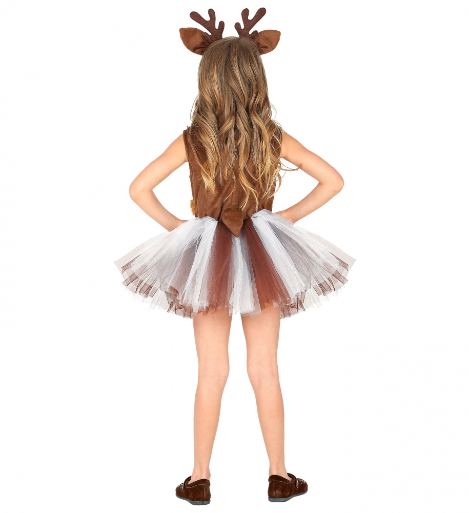Un costum de ren ce va fi adorat de cea mica! Rochita cu jupa jucausa si bentita cu coarnele de ren este tot ce are nevoie pentru serbarea de anul acesta. Iar dupa serbare, noi credem ca aceasta costumatie va deveni parte din garderoba celei mici. Carei fetite nu i-ar placea sa se joace, sa danseze si sa interpreteze personaje intr-o rochita cu jupa?