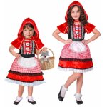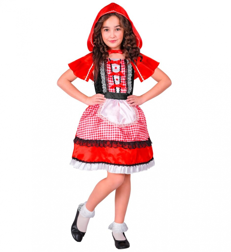 Costumul Scufita Rosie Fetite include rochia cu sort aplicat si pelerina cu gluga.
