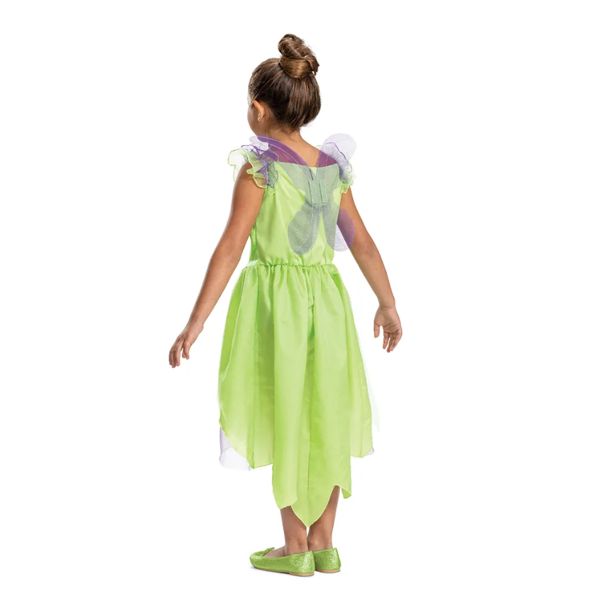 Costum Tinker Bell Disney include rochia cu imaginea personajului aplicata intr-o camee si aripile. Costumul Tinker Bell licentiat este disponibil pentru 5-6 ani (116-120 cm inaltime).