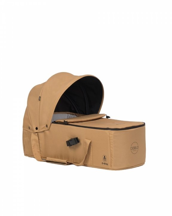 Cosulet port bebe tip landou Euro Cart Doblo CarryMe, cu intaritura, manere pentru transport, cu husa de picioruse si capotina, dimensiune 72 x 30 x 21 cm, Camel
