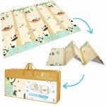 Covoras de joaca, Bocioland Panda, pliabil, protectie impotriva loviturilor, 180 x 150 cm, cu Imprimeu pe ambele parti, potrivit pentru interior si exterior