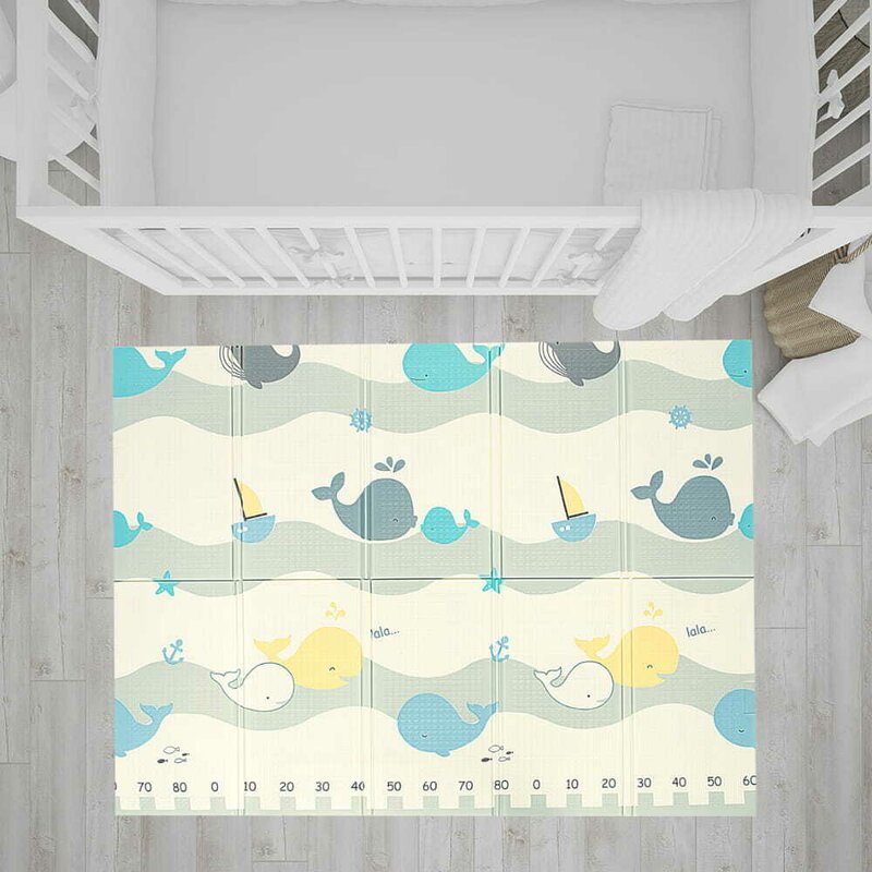 Covoras de joaca Bocioland Water City, pliabil, protectie impotriva loviturilor, 180 x 150 cm, cu Imprimeu pe ambele parti, potrivit pentru interior si exterior