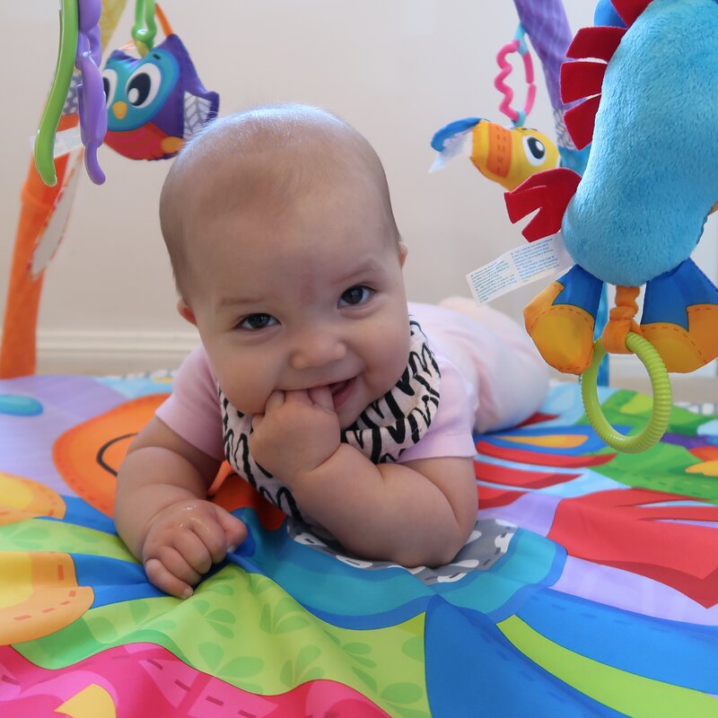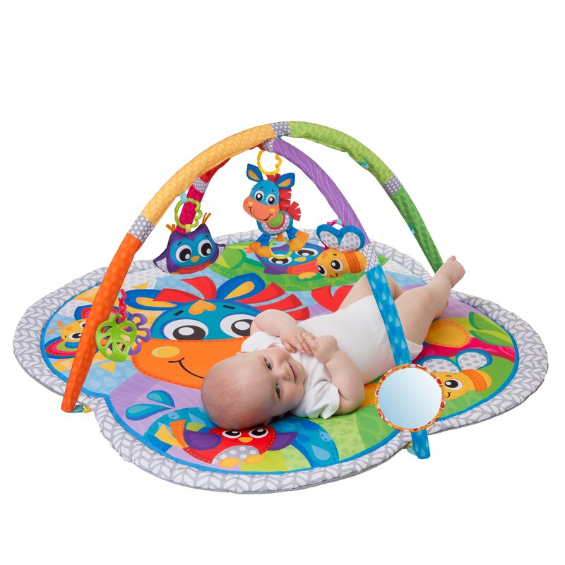 Culorile vii si imaginea bebelusului se reflecta in oglinda, invatand recunoasterea de sine, in timp ce cele patru jucarii detasabile il indeamna pe bebelus sa ajunga si sa apuce, intarind abilitatile motorii grosiere si fine.