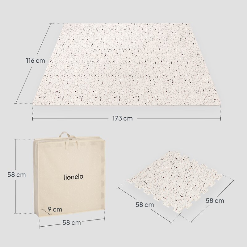 Covorasul Lionelo Yoka este fabricat din spuma XPE non-toxica, placuta la atingere, lipsita de mirosuri si sigura chiar si pentru bebelusii foarte mici. Spuma este stabila chimic si pastreaza forma timp indelungat, fara a se tasa sau deforma.